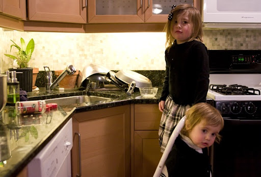 And just for kicks... here they are in their matching skirts, Alli with her spunky tights and bow. Even when they are into mischief they are stinkin' adorable.