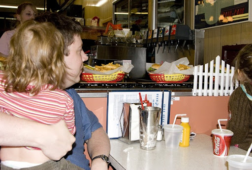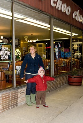 Tonight we took a trip to the 'burbs to eat at the Choo Choo Diner. I had heard about this little place and thought it would be fun to take the girls. It is not famous for its food, it is famous for its delivery...