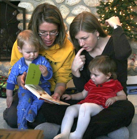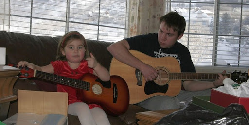 Santa was quite generous, and the girls were thrilled to open present after present. Among other things, Alli got a real guitar that is just her size. Uncle Adam and Alli had a little jam session. Ruby got a drum filled with other instruments. She jammed too.