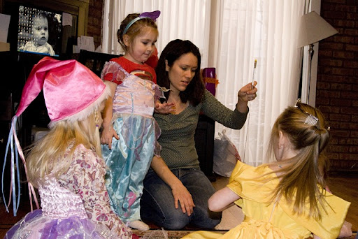 The invitations featured a princess, some fish and a unicorn. Alli was quite pleased. The cake featured all three themes too. I made a fish piñata. And we played a princess-ball-toss game, a fishing game, and pin-the-horn-on-the-unicorn. The kids dressed up in princess costumes. Alli was a mermaid princess (wow... she covered 2 out of 3 themes) and she wore one braid and one pigtail in her hair... plus a mermaid tiara.