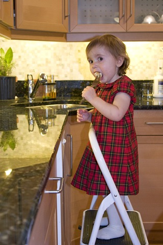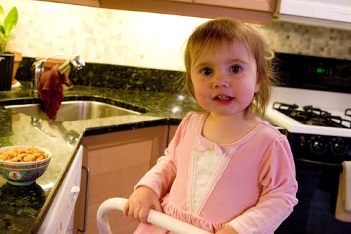 We are bundling up. I have been putting my thermals and wool sweaters to good use. Alli enjoys layering clothes too. She likes to dress herself, and layering just gives her more opportunity for creative expression. Friday's outfit was: snow boots, warm socks, black tights, pink velour pants, hot pink skirt, green undershirt, red t-shirt, and floral long-sleeve shirt. Needless to say, I am doing more laundry these days.