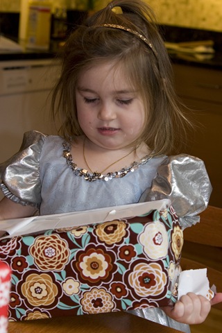 Alli opened presents after breakfast. There is nothing quite as exciting as a kid opening presents. The anticipation and paper-ripping and pulling presents out of boxes with shear delight is just fun to witness. Everything was perfect and just what she had always wanted. She got a book, a CD player, a CD, a harmonica, guitar picks, a guitar strap, and some cute clothes and accessories.