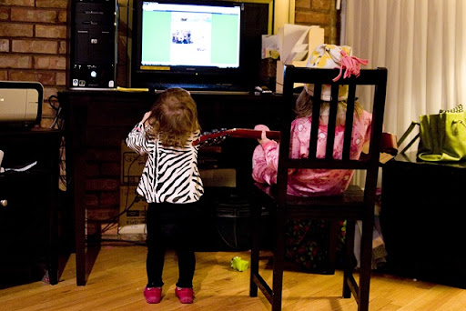 Alli had a rockin' Valentine's Day party at her school yesterday. Ruby came along for the celebration. The Valentine's festivities included a non-uniform day, so Alli got to wear whatever she wanted to school. She wore the pink velour outfit from Grandma with several bracelets, a necklace, heart-patterned flip-flops, heart sunglasses, and her sparkly red tote bag. (I am kicking myself now for not getting a better picture of the whole ensemble).