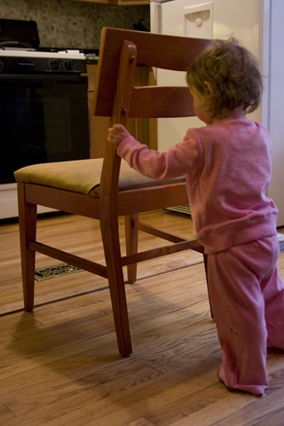 And in this instance she was pleading, "Chocolate! Chocolate! Chocolate!" in a most pathetic and desperate manner. I cruelly looked on, snapping pictures as her frustration deepened and her hunger for the brown nectar overcame her. Her mood quickly spiraled down as she tried to shove the chair across the hump with all of her 25-pound-ish might. Moments later she was on the floor crying, bitter tears flowing down her cheeks. And the chair wasn't any closer to the counter. Poor thing.